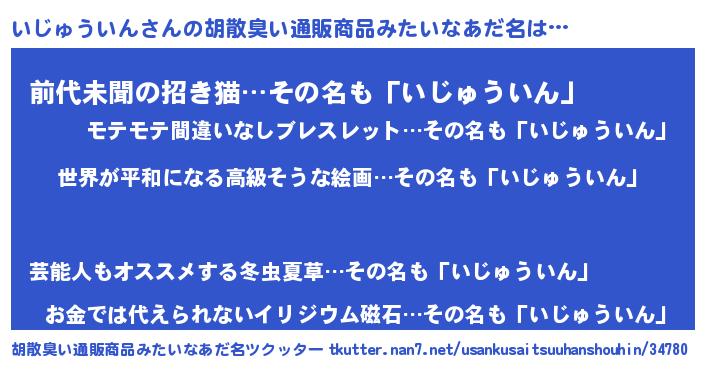 | 意味不明あだ名 | 『いじゅういんフォーエバー』 |