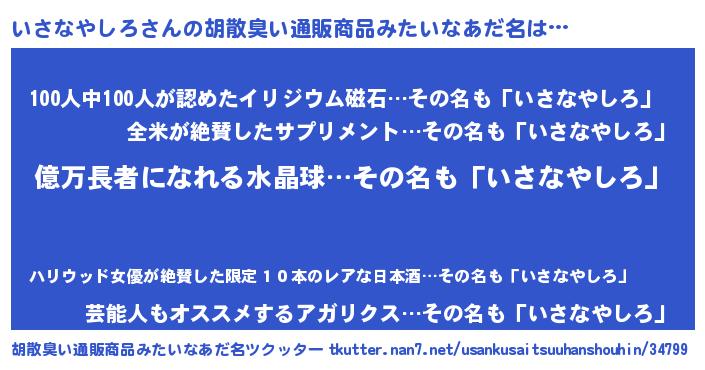 | ヒーロー風カッコイイあだ名 | 『スーパーイサナヤシロ』『銀牙騎士イサ』 |