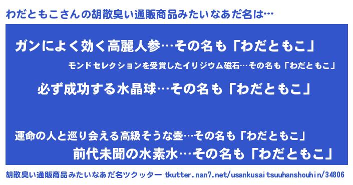 わだともこさんの胡散臭い通販商品みたいなあだ名をツクッター!