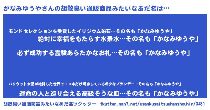 | 男性向けラノベタイトル風あだ名 | 『かなみゆうやの憂鬱』 |
