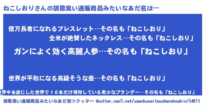 | ヘコむあだ名 | 『ねこにー』『ねこお』『なまこ酢』 |