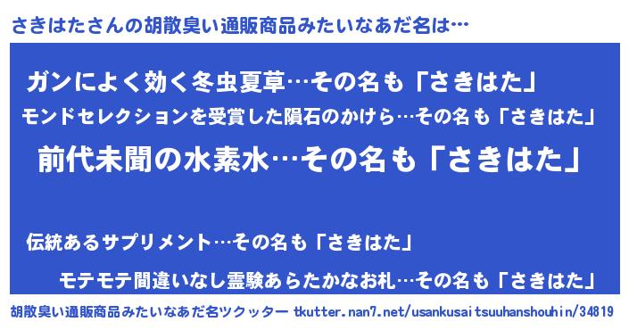 | ヘコむあだ名 | 『さきはた(震え声)』『さきもー』 |