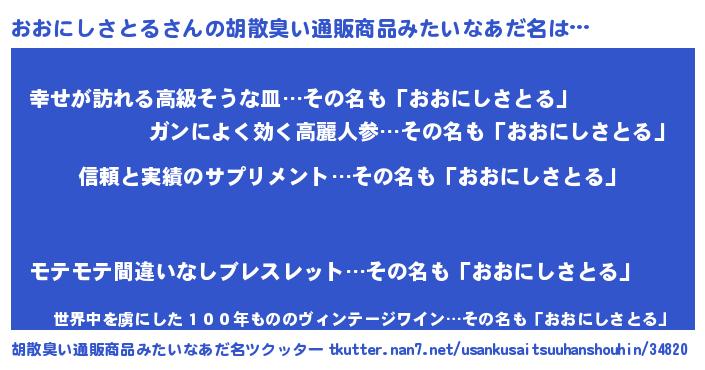 | 男性向けラノベタイトル風あだ名 | 『ダンジョンにおおにしさとるを求めるのは間違っているだろうか』 |