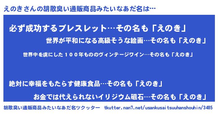 | 意味不明あだ名 | 『住所不定無職えのき(2歳)』 |