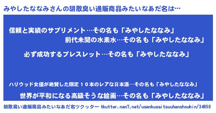 | ヘコむあだ名 | 『みやにー』『みやお』『なまこ酢』 |