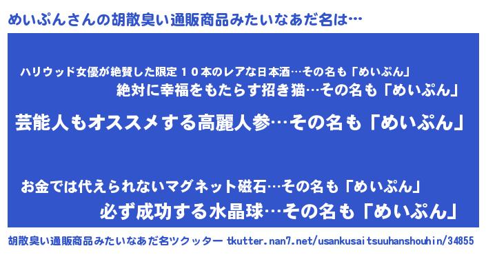 | 意味不明あだ名 | 『自称めいぷん』『ペロリンめいぷん』 |