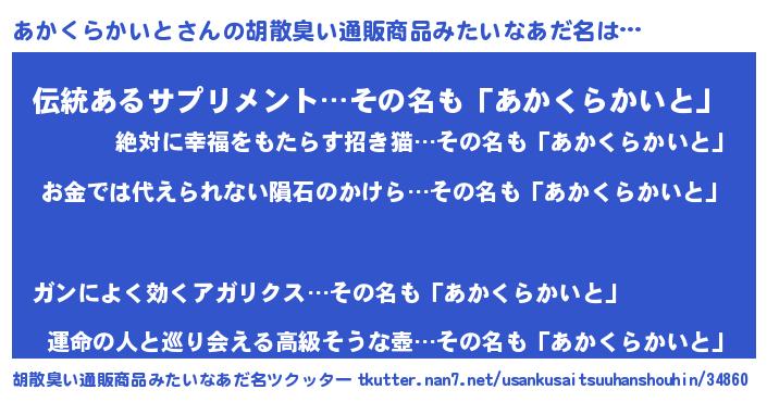 | 男性向けラノベタイトル風あだ名 | 『ノーゲーム・ノーアカクラカイト』 |
