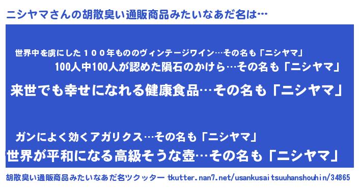 | ヘコむあだ名 | 『ニシヤマ(笑)』『豆乳』『ニシっ子』 |