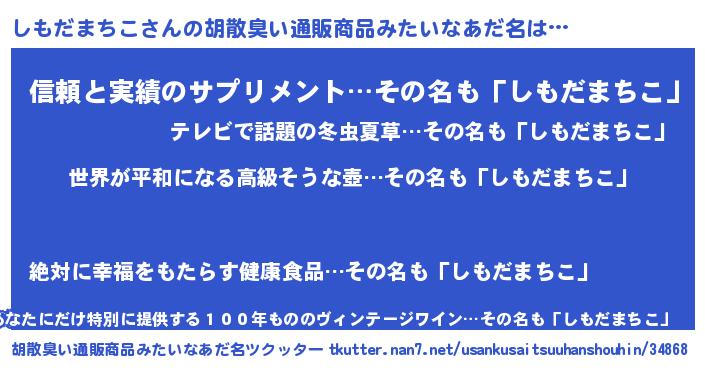 | ヒーロー風カッコイイあだ名 | 『ウルトラしもだまちこマン』 |