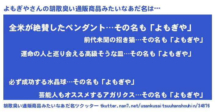 | 男性向けラノベタイトル風あだ名 | 『よもぎや~年齢イコール彼女いない歴の魔法使い~』 |