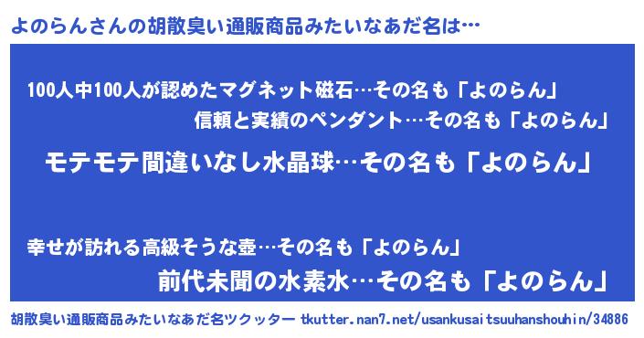 | 意味不明あだ名 | 『ペロリンよのらん』『永久保存よのらん』 |