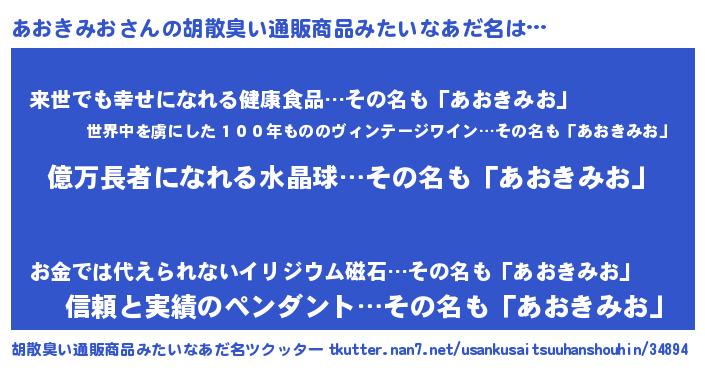 | 男性向けラノベタイトル風あだ名 | 『アオキミオアートオンライン』 |