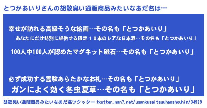 | 欧米人風あだ名 | 『トリンドルとつかあいり』 |