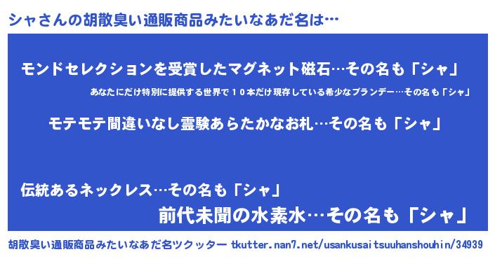 | ヘコむあだ名 | 『シャっふぃ~』『シャ(笑)』 |