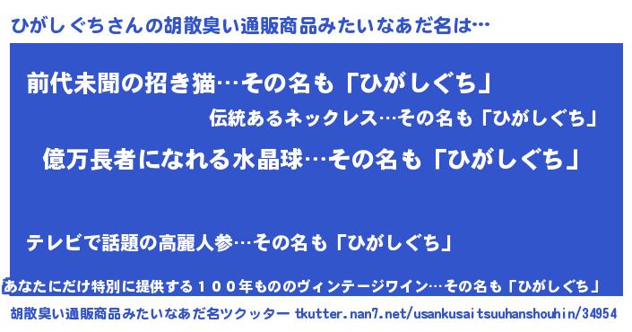 | ヘコむあだ名 | 『ひがもー』『ひがしぐち(笑)』 |