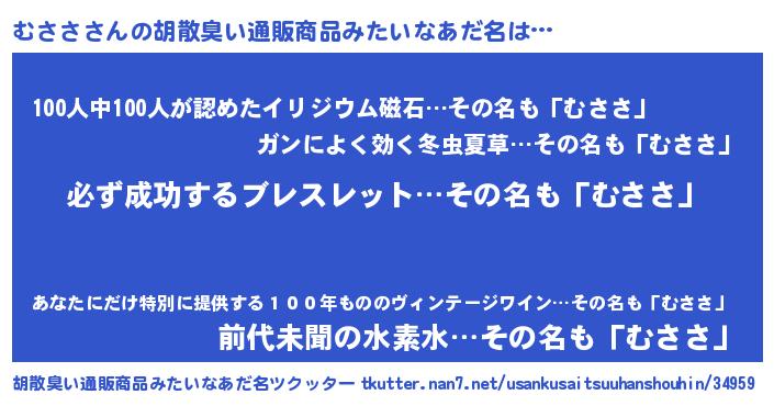 | ヘコむあだ名 | 『むさにー』『むささ(小並感)』 |