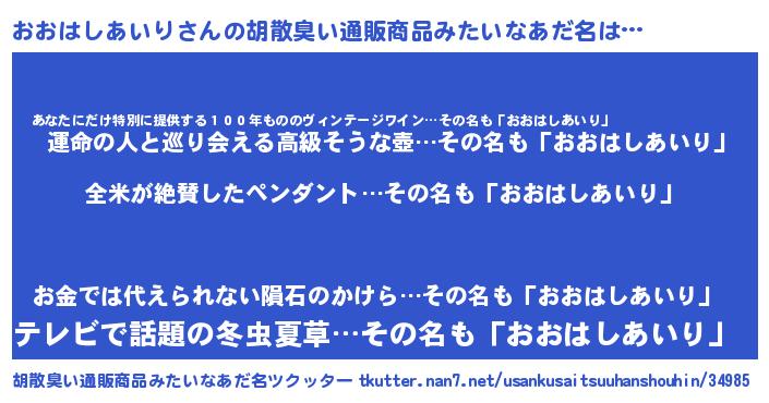 | 欧米人風あだ名 | 『ウサインおおはしあいり』 |