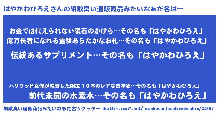 | ヘコむあだ名 | 『はやを』『はやかわひろえ(震え声)』 |