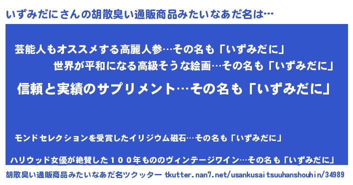 | 意味不明あだ名 | 『とにかく怪しいいずみだに』 |