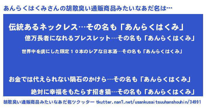 | ヘコむあだ名 | 『あん太郎』『あんらくはくみ(笑)』 |