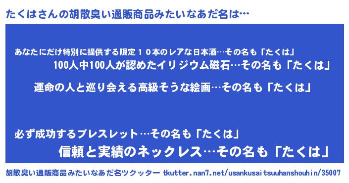 | ヒーロー風カッコイイあだ名 | 『ウルトラたくはマン』『仮面タクダー』 |