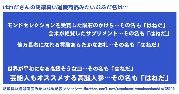 | ヘコむあだ名 | 『はねもー』『はねぷりん』『豆乳』 |