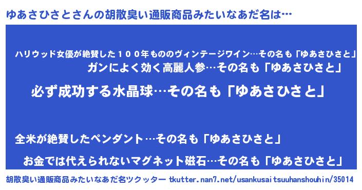 | 男性向けラノベタイトル風あだ名 | 『ゆあさひさとの憂鬱』 |