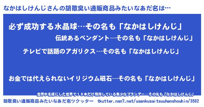 | 意味不明あだ名 | 『自称なかはしけんじ』 |