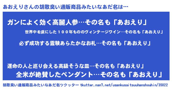 | 伝説のあだ名 | 『伝説のスナイパーあおえり』 |
