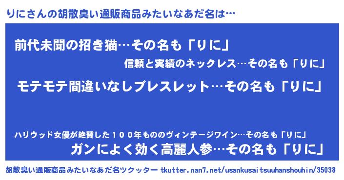 | ヘコむあだ名 | 『りにふぇ~』『りに(笑)』『りにを』 |