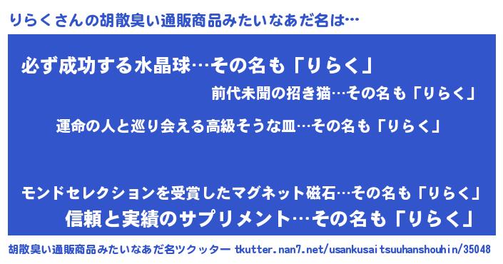 | ヒーロー風カッコイイあだ名 | 『ウルトラりらくマン』『スーパーリラク』 |