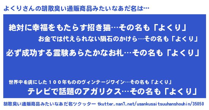| 意味不明あだ名 | 『ペロリンよくり』『永久保存よくり』 |