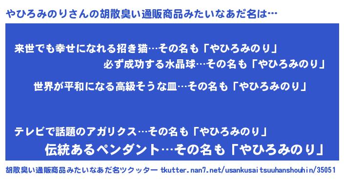 | 意味不明あだ名 | 『やひろみのりフォーエバー』 |