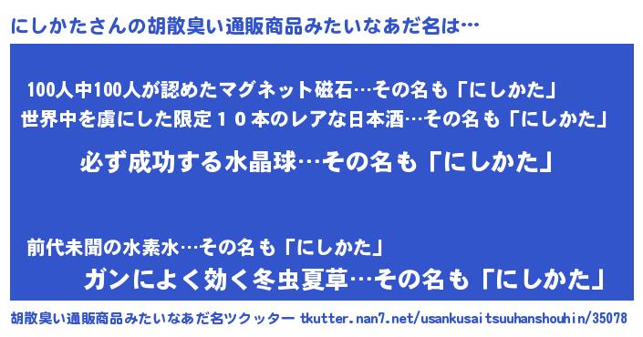 | ヘコむあだ名 | 『にしふぇ~』『にしかた(笑)』 |