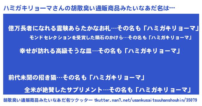 | 欧米人風あだ名 | 『ハミガキリョーマクリステル』 |