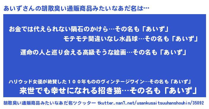 | ヘコむあだ名 | 『酢こんぶ』『あいず(苦笑)』 |