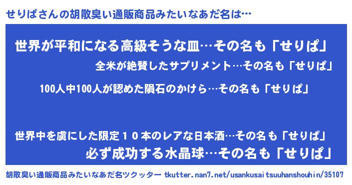 | ヒーロー風カッコイイあだ名 | 『正義の使者せりぱ』『スーパーセリパ』 |