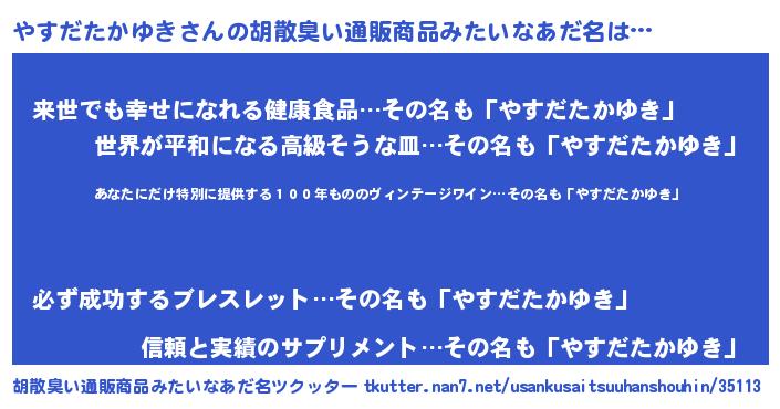 | 意味不明あだ名 | 『住所不定無職やすだたかゆき(12歳)』 |