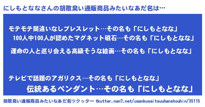 | 欧米人風あだ名 | 『にしもとななクリステル』 |