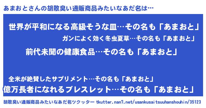 | ヘコむあだ名 | 『あまおと(笑)』『豆乳』『あまもー』 |