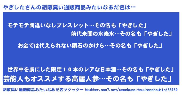 | ヘコむあだ名 | 『やぎっふぃ~』『やぎした(笑)』 |