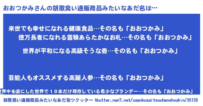 | 意味不明あだ名 | 『おおつかみフォーエバー』 |