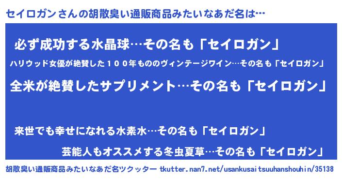 | 意味不明あだ名 | 『とにかく怪しいセイロガン』 |