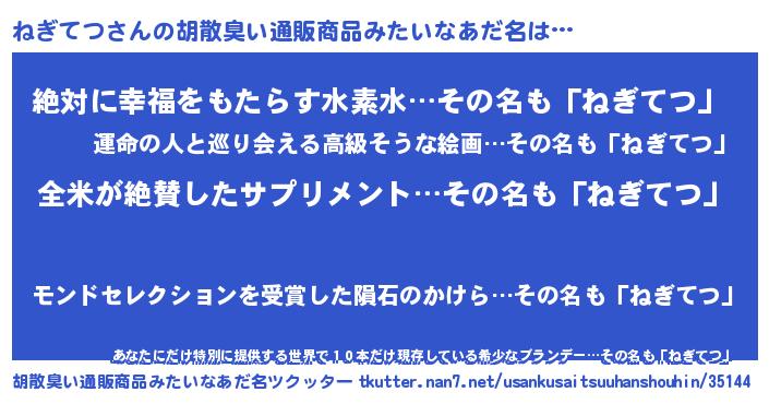 | 意味不明あだ名 | 『とにかく怪しいねぎてつ』 |