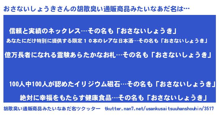 | ヒーロー風カッコイイあだ名 | 『スーパーオサナイショウキ』 |