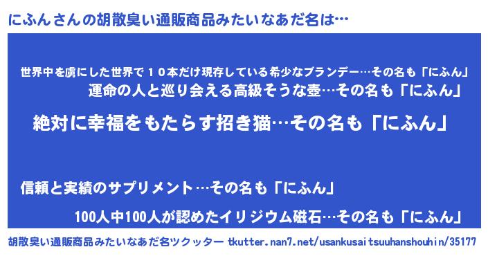 | ヘコむあだ名 | 『にふん(笑)』『なまこ酢』 |