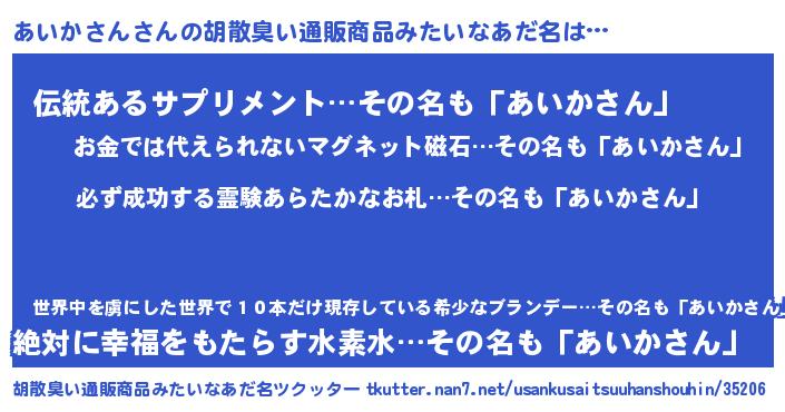 | 男性向けラノベタイトル風あだ名 | 『アイカサンスレイヤー』 |