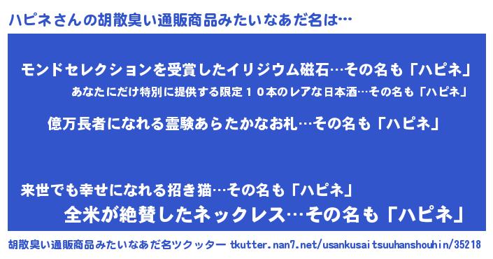 | 意味不明あだ名 | 『ペロリンハピネ』『永久保存ハピネ』 |