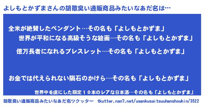| 恥ずかしいあだ名 | 『プリティーよしもとかずま』『よしちん』 |