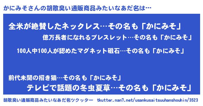 かにみそさんの胡散臭い通販商品みたいなあだ名をツクッター!